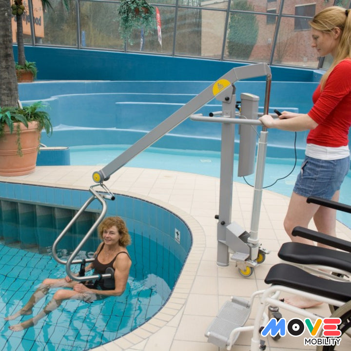 Experience freedom, comfort, and independence in the water with the Handi-Move Pool Hoist, the ultimate portable solution for safe wheelchair-to-pool transfers.