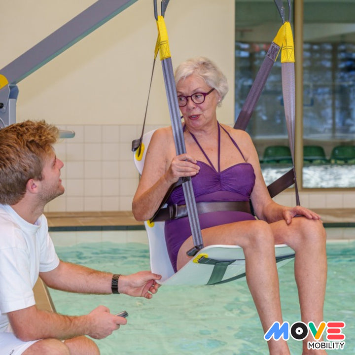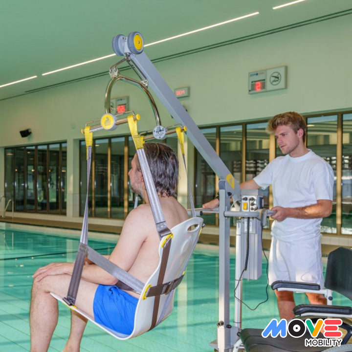 The Handi Move Pool Hoist is a premium portable pool lift designed to provide safe, comfortable, and easy transfers between a wheelchair and the pool. Built for convenience and long-term use in aquatic environments, this battery-operated pool hoist offers a 360° swivel range and smooth, quiet lifting action, ensuring confidence and independence with every transfer.